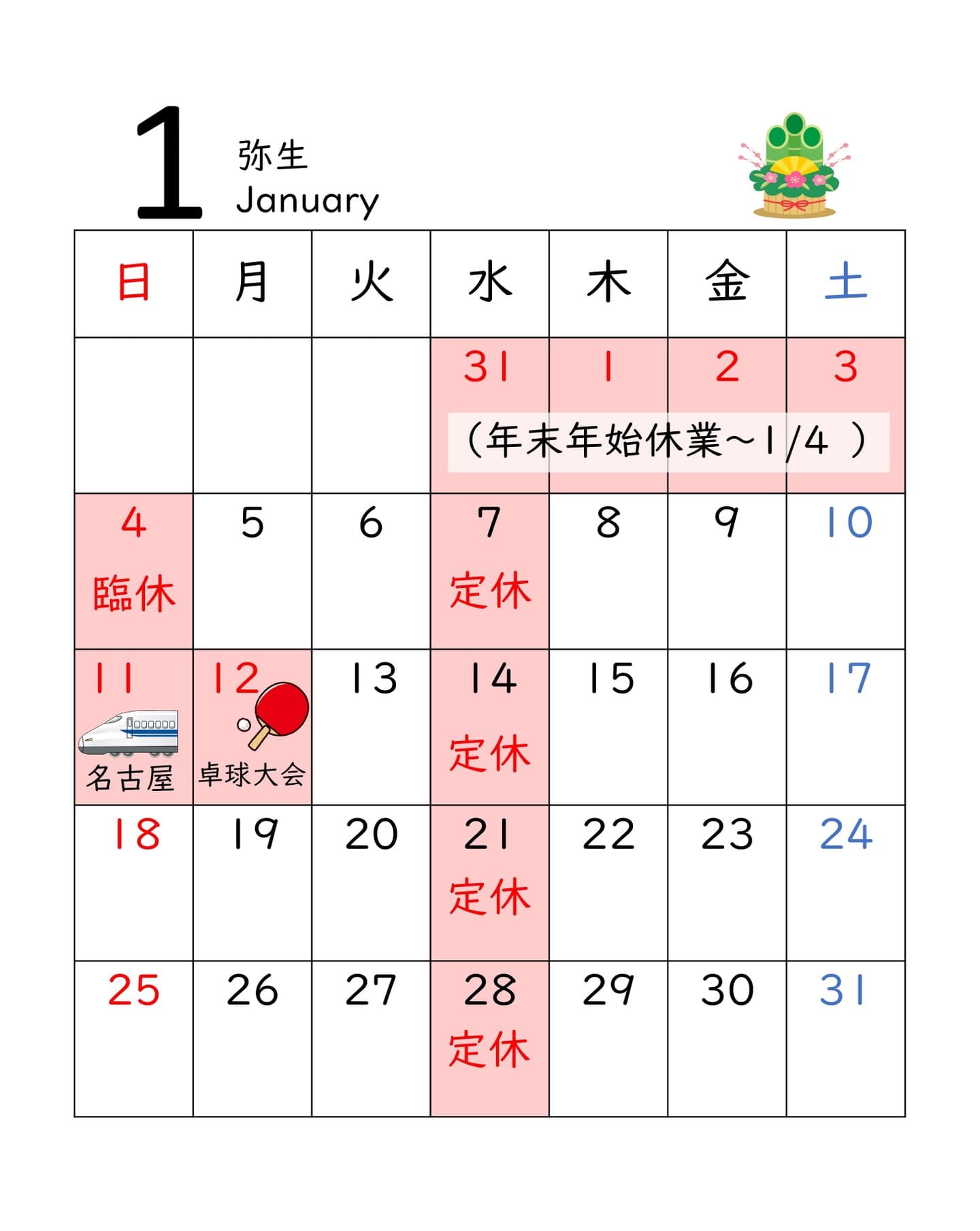 営業カレンダー