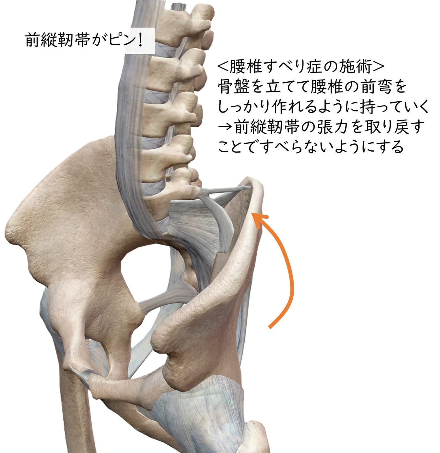 本来腰椎は前弯しているので、この前縦靭帯ピン!と