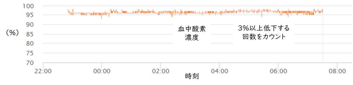 同時に血中酸素を計測できるので、睡眠時無呼吸の