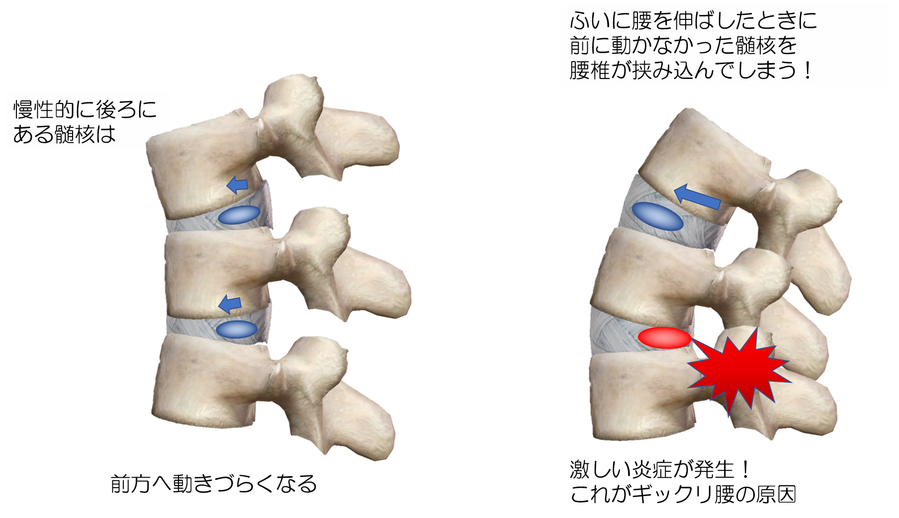 腰を伸ばそうとした瞬間、後ろ側で腰椎に挟まれてしまう