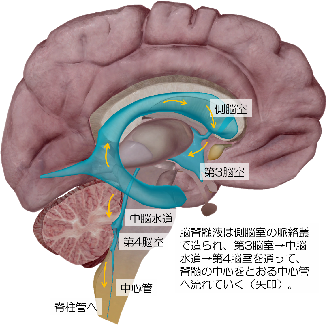 第3脳室から中脳水道、第4脳室を経て、