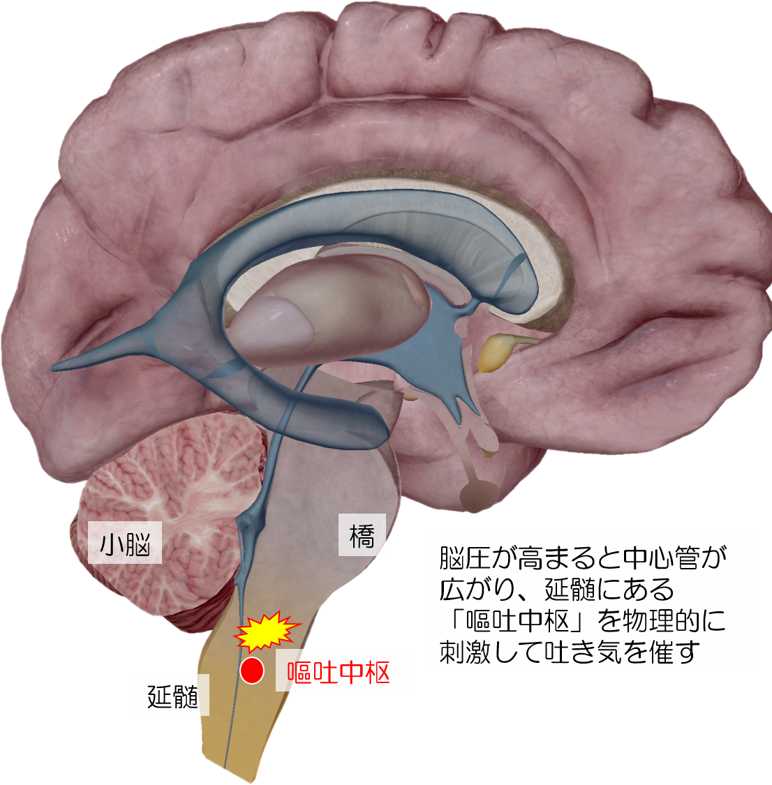 「嘔吐中枢」を脳圧が刺激
