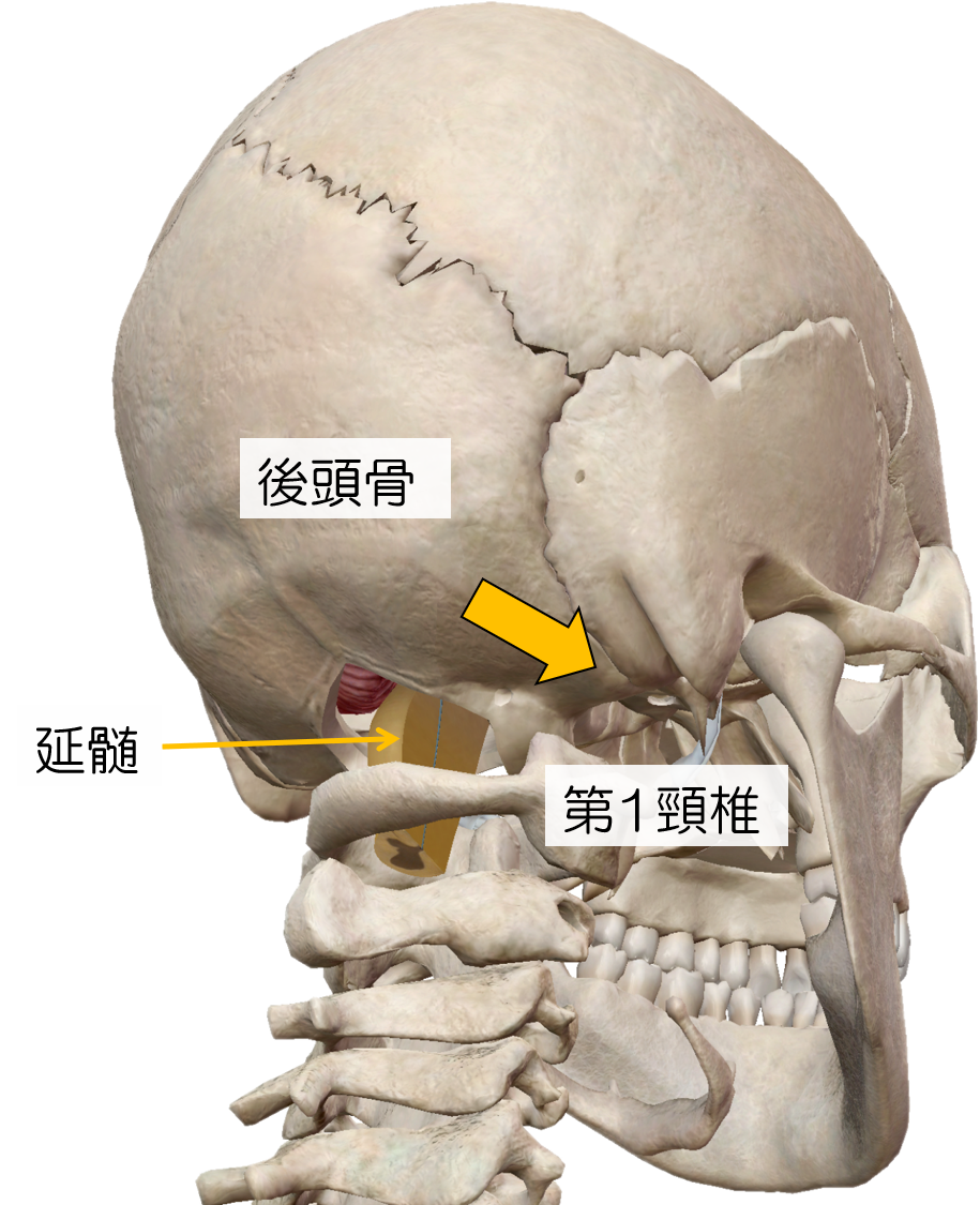 後頭骨から第一頸椎のあたりにあります。