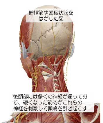 このタイプの頭痛の方は頸椎の動きが悪く、